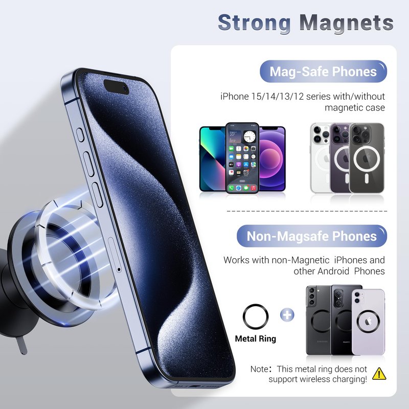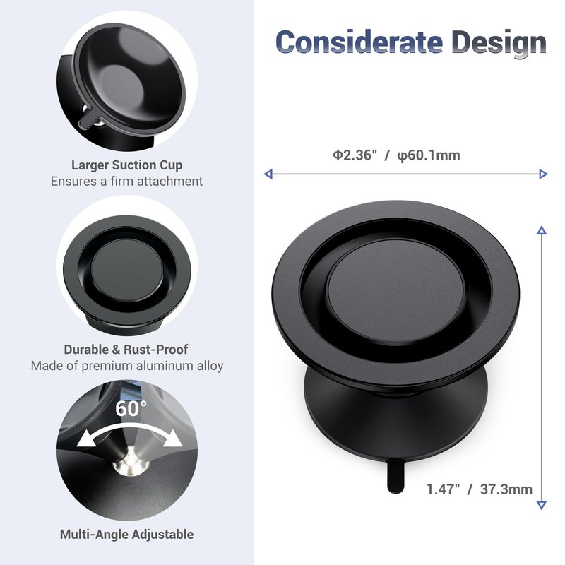- 【Wide Compatibility】 This suction phone holder can snap directly to iPhone 16 Pro Max, iPhone 16 Pro, iPhone 16 Plus, iPhone 16, iPhone 15, 15 Plus, 15 Pro, 15 Pro Max, iPhone 14, 14 Plus, 14 Pro, 14 Pro Max, iPhone 13, 13 Pro, 13 Pro Max, 13 Mini, iPhone 12, 12 Pro, 12 Pro Max or magnetic cases. It comes with clear film and metal ring, allowing to work with the non-magnetic regular cases and Android devices.