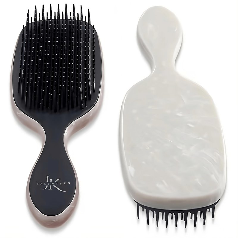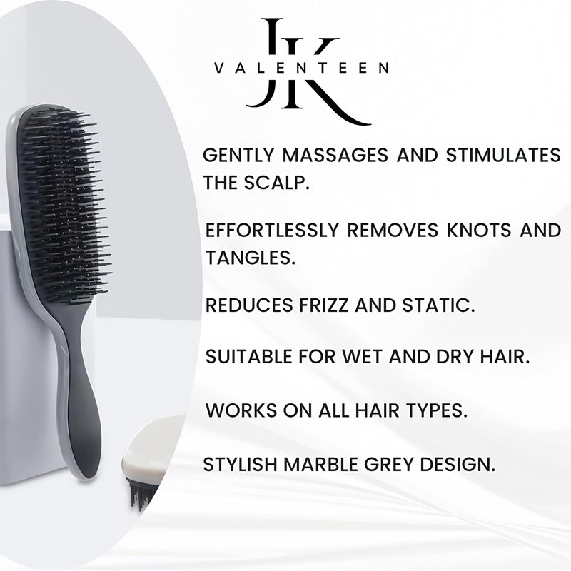 Transform your hair care routine with the JK VALENTEEN Marble Grey Detangling Plastic Hair Brush. This versatile detangling brush is expertly designed to detangle and massage your scalp, promoting healthy hair growth while effectively reducing frizz and static. The soft, flexible bristles glide effortlessly through wet or dry hair, making it perfect for all hair types, including curly, straight, thick, and fine hair. Engineered with an ergonomic no-slip handle, this plastic hair brush ensures a comfortable and secure grip. The stylish marble grey finish adds a touch of elegance to your bathroom or vanity, while its durable construction ensures long-lasting performance. Whether you're an adult or a child, this detangler brush provides a pain-free brushing experience, gently working through knots and tangles without causing damage or discomfort. Easy to clean and maintain, the JK VALENTEEN Hair Brush is not only functional but also a chic accessory that enhances your daily hair care routine. Elevate your hair brushing experience with the JK VALENTEEN Marble Grey Detangling Plastic Hair Brush and enjoy the benefits of smoother, healthier, and more manageable hair every day. Perfect for curly hair, thick hair, and fine hair, this anti-frizz, anti-static detangling brush is your go-to tool for achieving tangle-free, shiny hair.