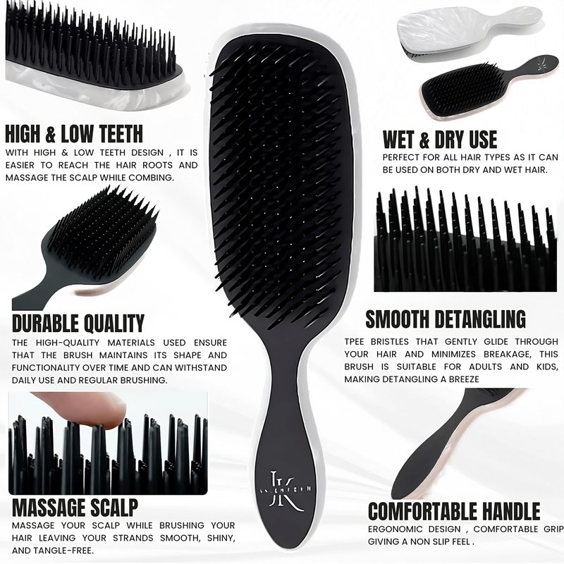 - PREMIUM QUALITY AND GENTLE CARE: This hair detangler brush is expertly crafted with high-quality materials, this soft hairbrush ensures durable and effective performance while providing gentle care. Designed to be gentle on your hair and scalp, it minimizes breakage and irritation, promoting healthier hair with every use.