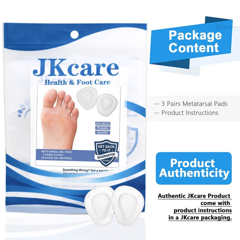 If you suffer form metatarsalgia, morton’s neuroma, you may be prevented living an active lifestyle. But good news is you can choose JKcare Metatarsal Gel Pads to solve the annoying problem. JKcare metatarsal pads create padded support to protect your ball of foot, made with medical grade silicone gel for your lasting comfort. You will finally keep on an active and healthy lifestyle without pain.