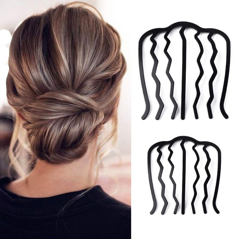 JKJF U Shape Hair Side Combs Hair Fork Metal Hairpins Hair Clip Hair Tools for Women and Girls Hairstyle Hair Accessories - Black 7 Teeth 2 Sizes