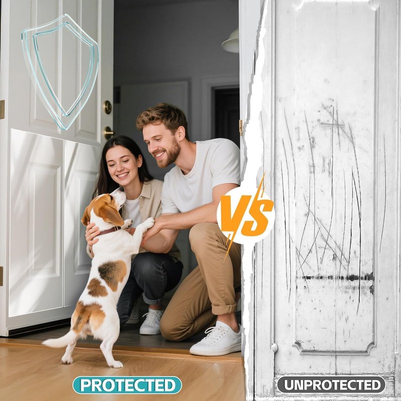 - ✅EFFECTIVE DOOR PROTECTION: Made from durable, transparent PET material, this scratch guard shield creates a strong barrier between your pet's nails and your valuable doors, walls, window frames, and other surfaces, preventing unsightly scratches, scuffs, and damage.