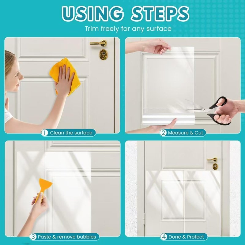 Invisible & Discreet: Unlike unsightly metal or plastic panels, our protector is completely transparent. It blends seamlessly with your doors and walls, providing maximum protection while remaining minimal and unnoticeable. Your home's beautiful finish stays in view, not the protector.