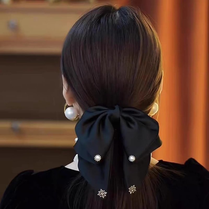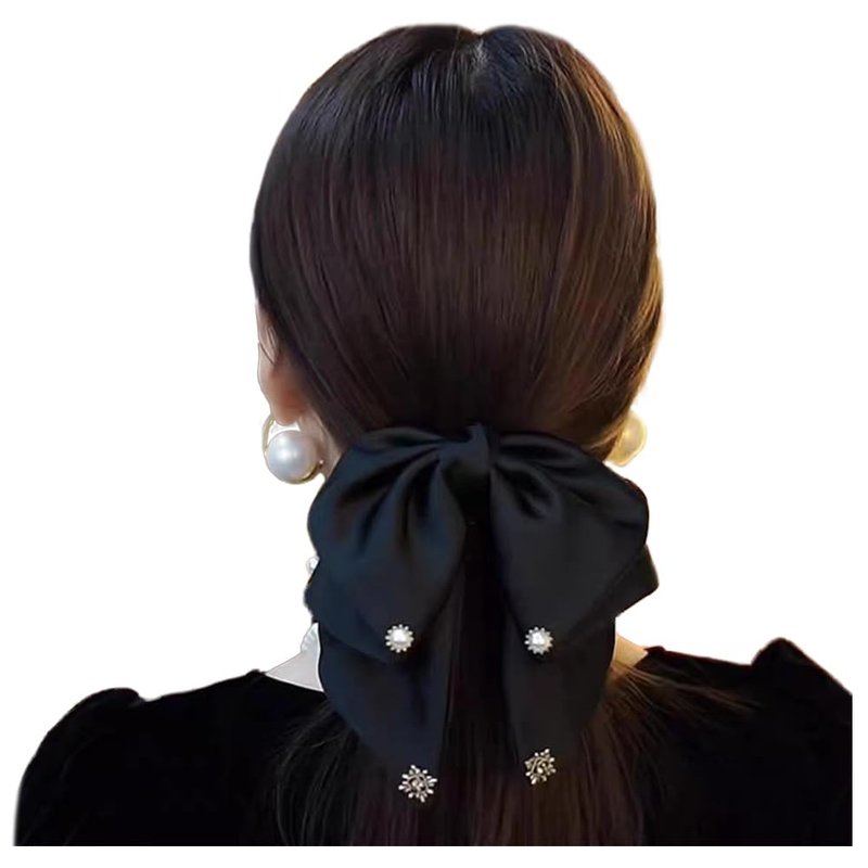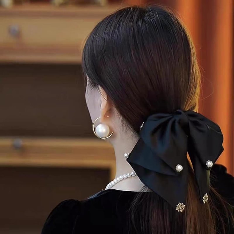 - Hair Bow Pearl Clips for Women : The black bow hair clips are cute and have pearl put in bow, add elegance to your a feminine style, large hair bow clips for women girls looks great on various hairstyles, classic and stylish.