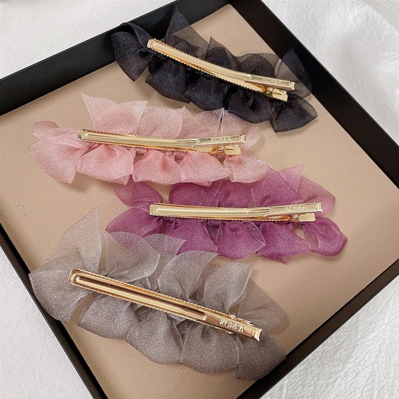 JKQBUX Sweet Elegant Organza Bowknot Hair Clips for Women Girls Valentine's Days Duckbill Hairpins Styling Bow Hair Barrettes Wedding Hair Accessories