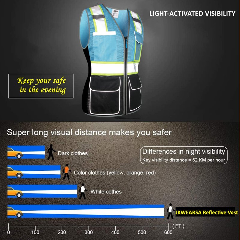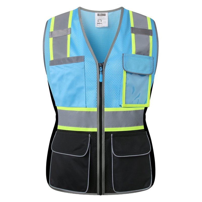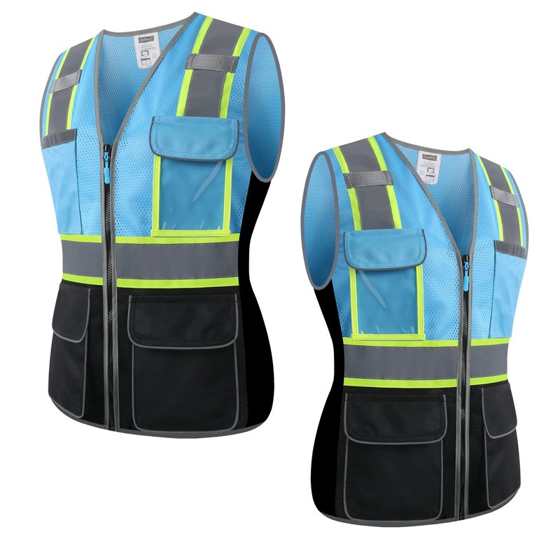 JKWEARSA Safety Vest For Women,High Visibility Reflective Work Vest With Multi Pockets And Zipper,Blue and Black,Small