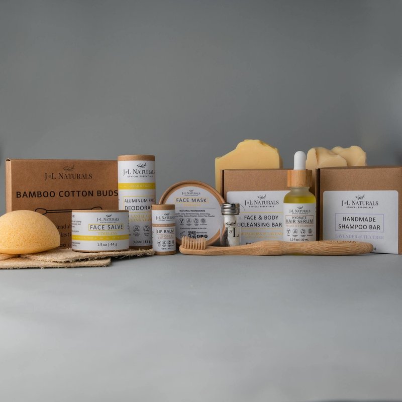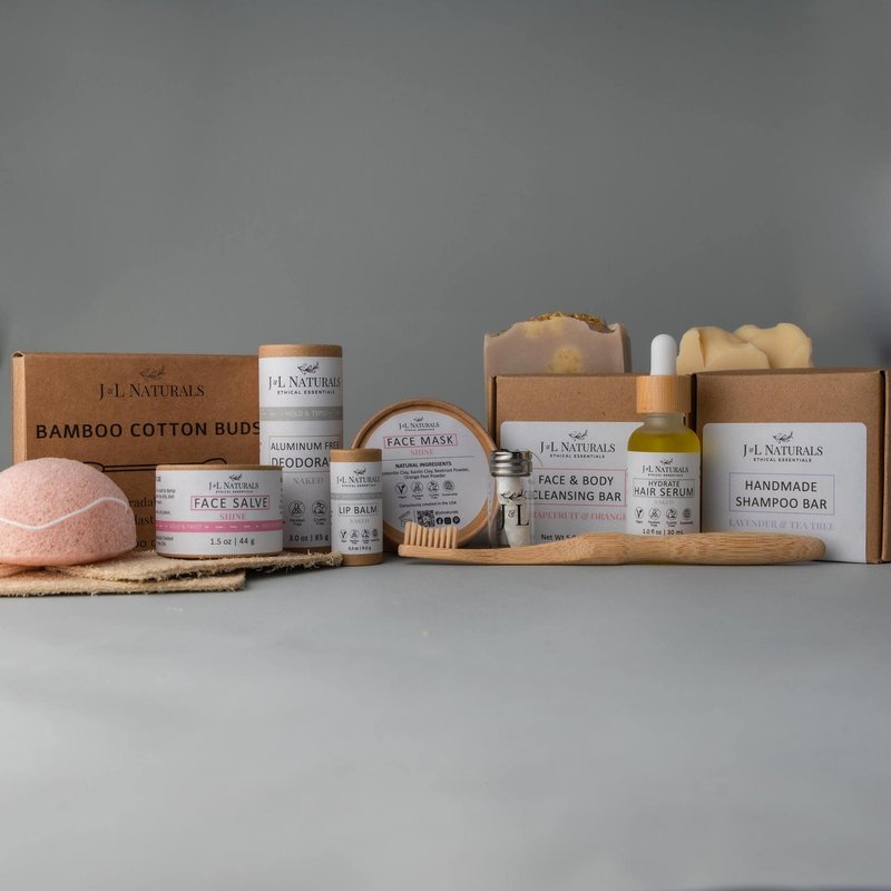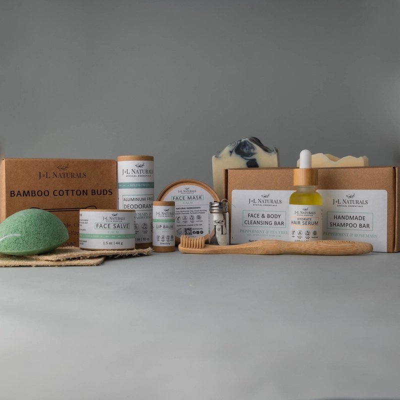 J&L Naturals | Exceptional Self-Care Kit With Cleanser, Konjac Sponge, Face Mask, Face Salve, Lip Balm, Shampoo, Hair Serum, Deodorant, Toothbrush & More (Calm (sensitive, acne-prone), Exceptional)