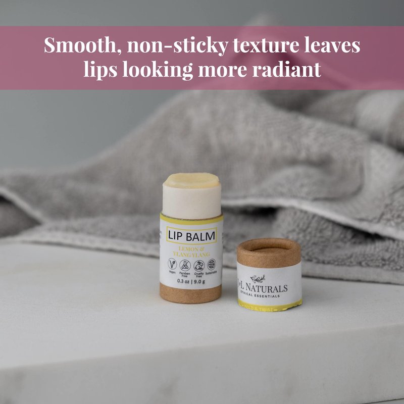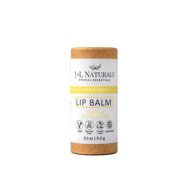 J&L Naturals Sustainable Lip Balm | Organic Ingredients, 100% Natural, Eco-Friendly | Cruelty Free, Vegan, Paraben Free, Silicone Free (Lemon & Ylang Ylang, Single)