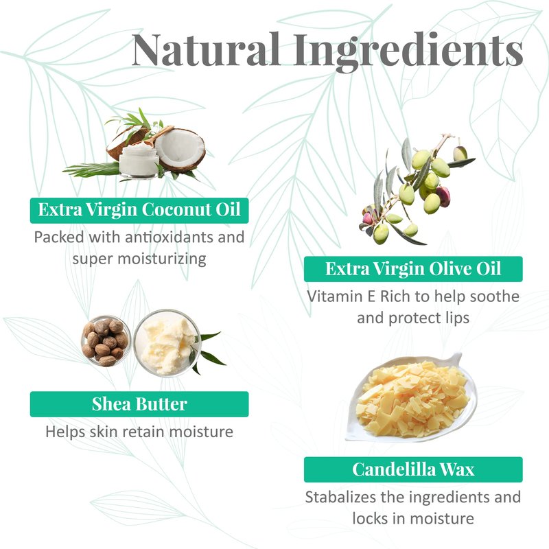- 🥥 ALL-NATURAL LIP CARE: Made with Organic Coconut Oil, Extra Virgin Olive Oil, Shea Butter, Candelilla Wax for nourishment and lip treatment, without use of harsh chemicals