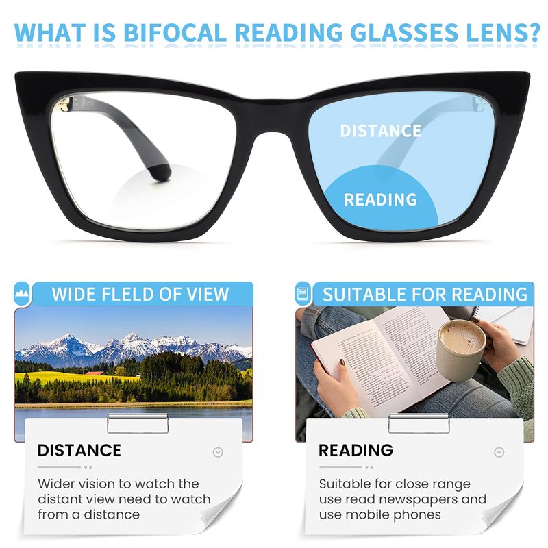 - No Line Bifocal Lens - Regular on top, reading at the bottom. Regular top distance lens help to look far away with normal vision. Reading lens help to read, write, enjoy screen time by magnifying small print. You don't need to take off.