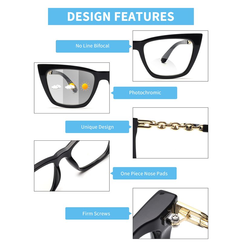 - Photochromic Design - Our photochromic lenses will change from clear to grey in sunny, protect your eyes and maintain a comfortable light.