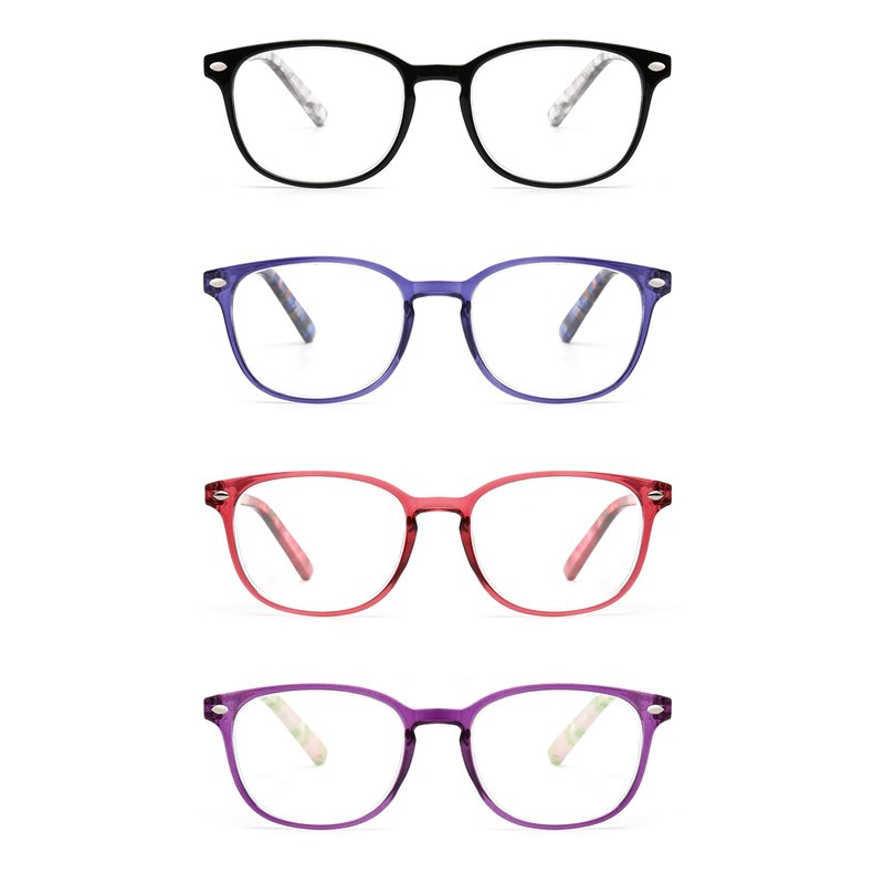 - You can get 4 pairs of reading glasses one time, keep a pair at home, work place or anywhere else you may need them in a pinch, avoid spending times on finding glasses.