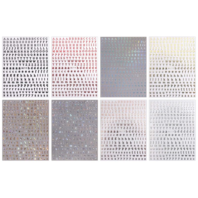 JMEOWIO 8 Sheets Glitter Letter Nail Art Stickers Decals Self-Adhesive Pegatinas Uñas English Alphabet Nail Supplies Nail Art Design Decoration Accessories