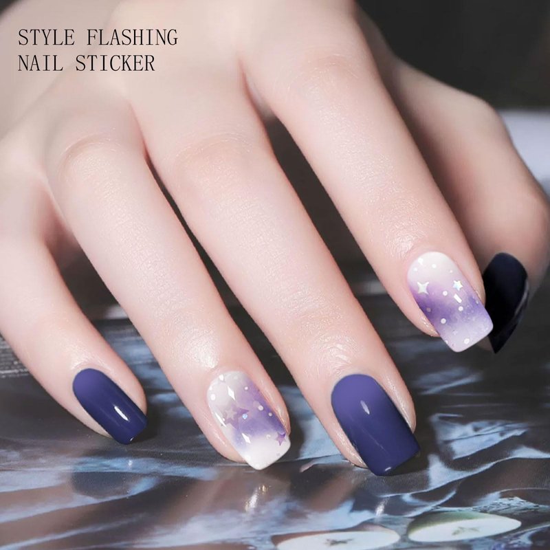 JMEOWIO Semi Cured Gel Nail Strips Purple Glitter Star Gel Nail Stickers Nail Supplies Nail Art Design Decoration Accessories