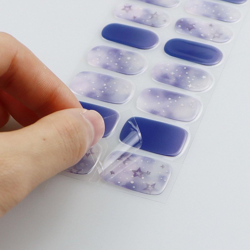 How to use: Step1: Prep clean your nails. Use the Prep Pads to wipe away oil, water and any other moisture.Then let your nails dry naturally. Step 2: Choose the correct size and apply the strips to your nails, leaving a slight space between the strip and your cuticles. Step 3: Press on and smooth the strips firmly onto your nails and then trim the excess.Press tightly around the gel nail strip to expel air without leaving any gaps. Step 4: Cure the applied strips 1-3 times under the UV Gel Lamp. Cure the gel nails under UV/LED for 60 seconds to make them stronger, harder and more glossy. According to the actual curing situation, if the gel nails are not fully cured, the curing time can be extended by 60 seconds. Ensure that any remaining nail wraps are stored back into the black bag, and use a sealing strip to seal the opening to avoid drying out.Tip:If you can't find the right gel for your nail. You can extend it a bit to match your nail size,The gel is pretty stretchy.