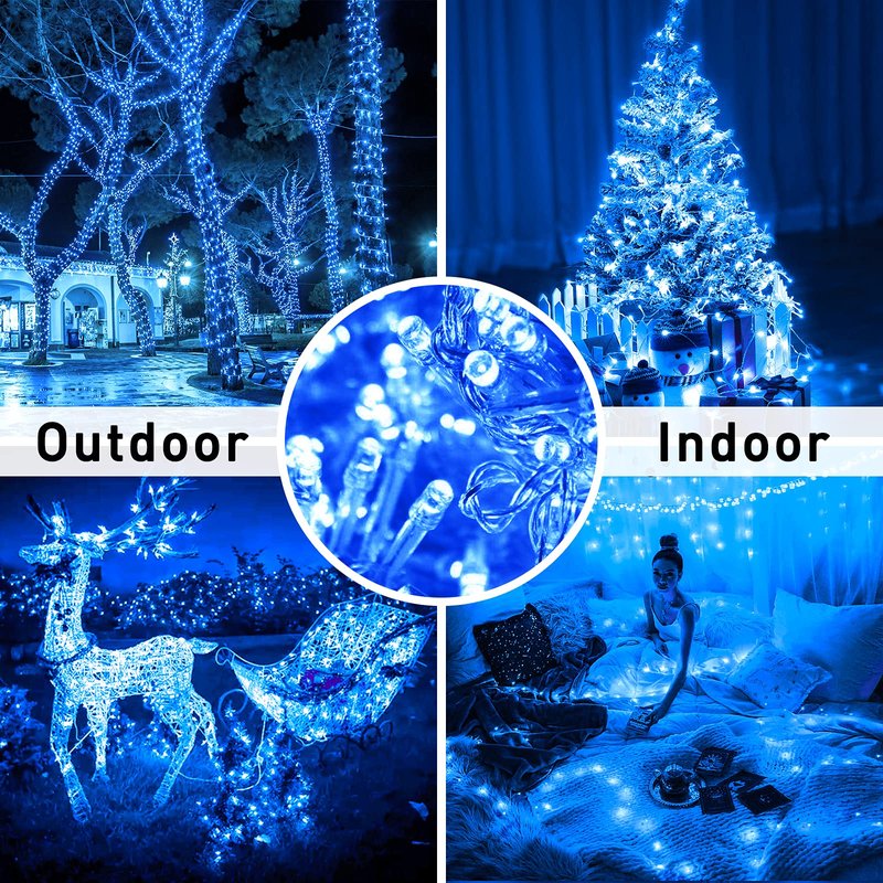 - Why Choose This Blue Christmas String Lights for Indoor and Outdoor - Super Bright with Energy Save Bulbs, Safer Plug in(UL588 Approved), Waterproof, Connectable, 8 Lighting Modes, Fantastic Decoration, Gift Box