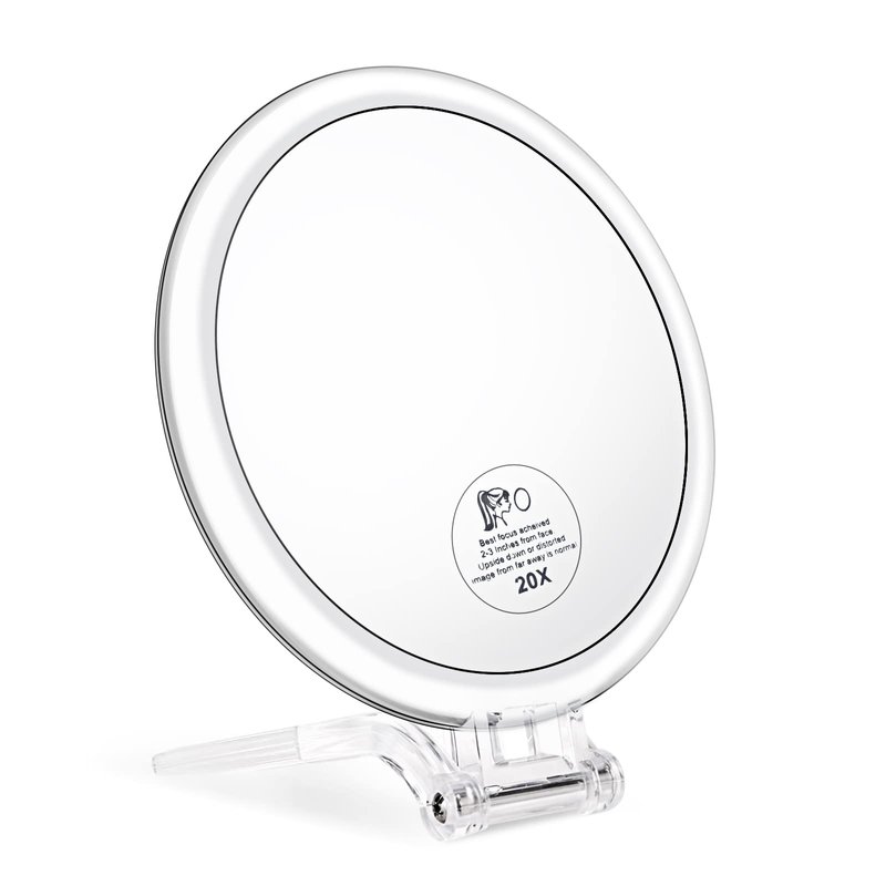 1. 20X mirror is very powerful but also small. You can't see your entire face, but only a part of it like eyes, mouth, etc. Normally used for precise makeup.