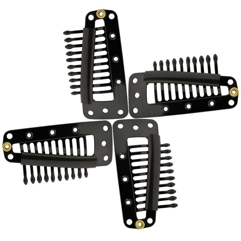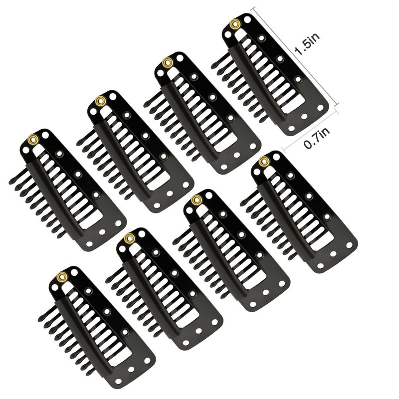 Jmkcoz 20pcs Snap-Comb Wig Clips with Rubber for Hair Extension Hairpiece DIY Clip in Hair Extensions 10-Teeth Wigs Weft Black Color