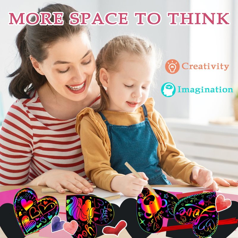 - Safe and Eco-Friendly Materials-Our Valentine's Scratch Art Cards are made from high-quality, non-toxic, odor-free materials that are both safe and environmentally friendly. Easy to use and clean, they provide a worry-free, enjoyable experience for kids!