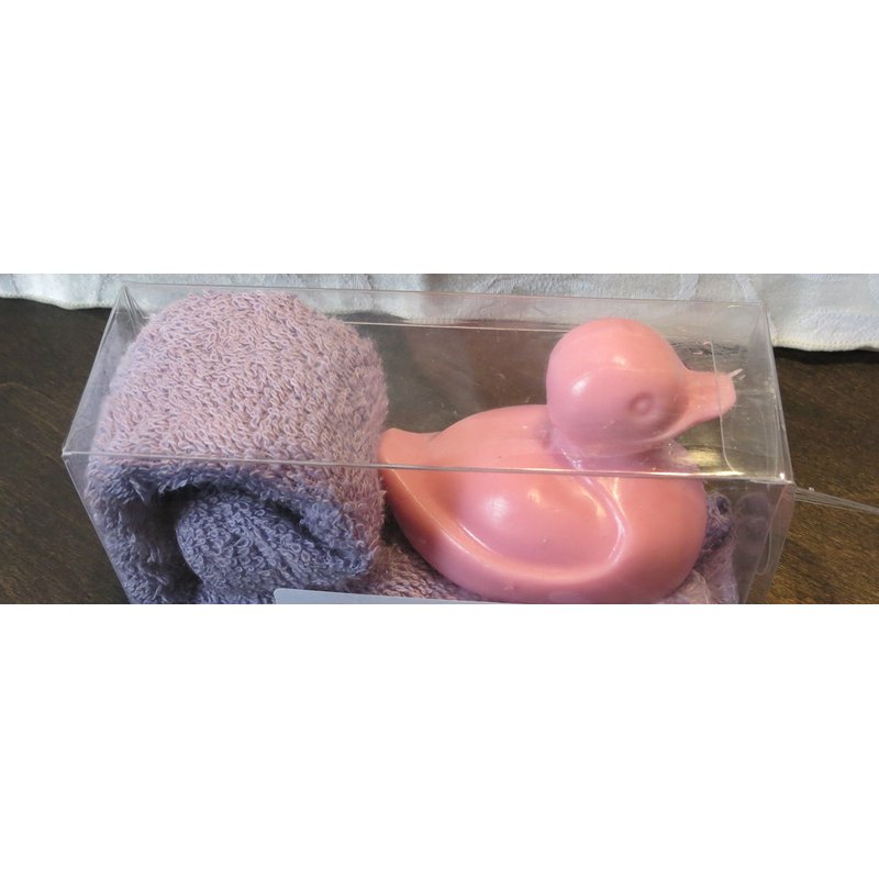 - duck soap with washcloth in clear gift box