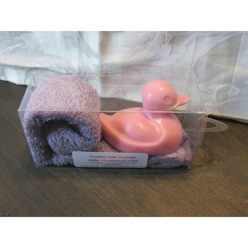 JOANNDLES Duck soap with washcloth in Clear Gift Box