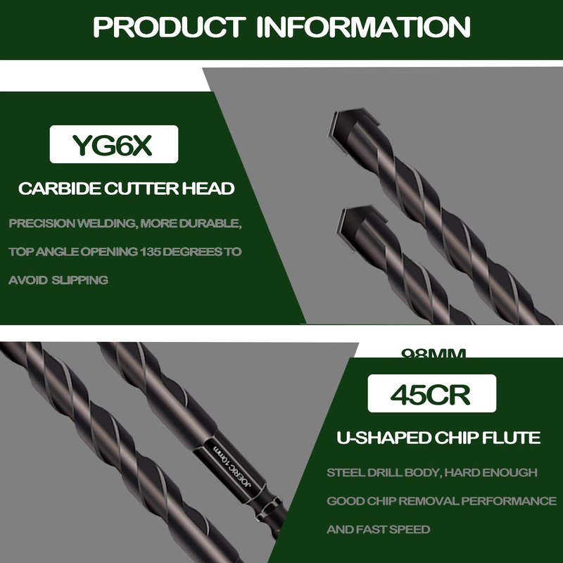 - 🌺IMPROVED EFFICIENCY: high quality & hardness YG6X tungsten steel alloy head features reduced resistance and better precision and is more wear resistant. Carbide Tipped Drill Bits Are Built For Longevity and Will Stay Sharper Much Longer Than You're Typical Steel Drill Bit.