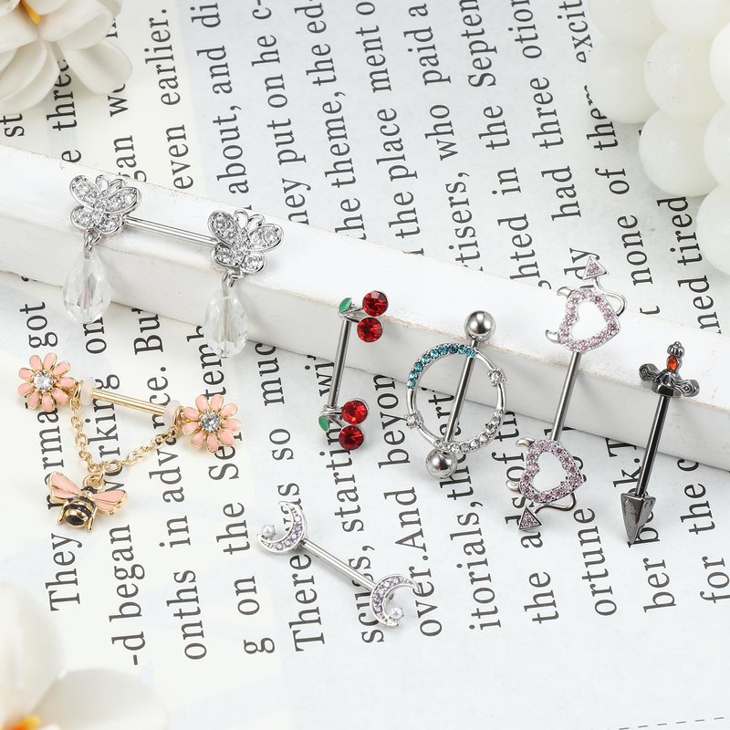 - Perfect Gift: 6 different styles cute nipple rings, shimmering with sparkles, quite classic and beautiful, suitable for different parties, Festivals, Ceremonies, Bars, daily life wear and many occasions, also can serve as gifts for your close people, lover, wife, sisters, female friends and soon. Perfect body piercing jewelry set for women and girls.