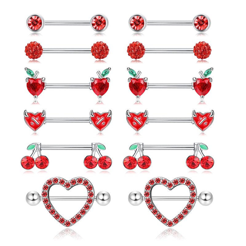 - Nipple Rings Set: You will get 6 pairs nipple rings in one order with different design. Including cherry nipple ring, apple nipple ring, devil nipple ring, ball nipple ring and heart nipple ring with shiny Cubic Zirconia. Multiple choices for you, satisfy your various needs, beautiful and exquisite, give you a different feeling.