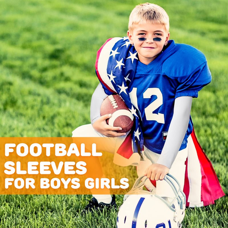 - Bright Color & Great Tattoos: Various colors & prints for option. An awesome dress up clothes for kids. Make your kids look like a pro in football games, baseball, volleyball, basketball, soccer, football, golf training, camping trips and so on. These youth arm sleeves are great for elbows and forearms from turf burns, sun rays and branches. These arm sleeves also can be used to play the character what child favorite.