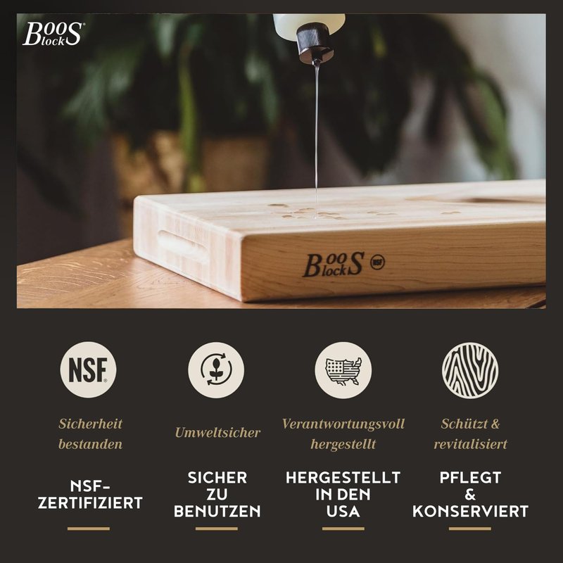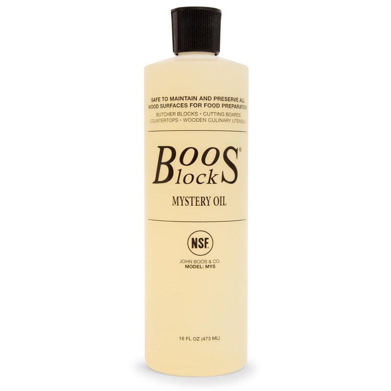 - Once a month, John Boos Mystery Oil to your cutting board or butcher block and allow it to soak in overnight. Repeat the process more often when your board is new, or if you live in a dry/arid climate