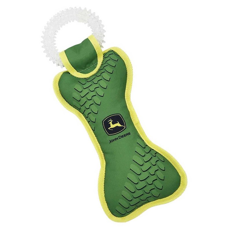 JOHN DEERE DOG DENTAL TEETHING RING TUG TOY & Nylon Squeak Bone Toy. TOUGH STURDY PET TOY with John Deere Logo. BEST DOG FIELD TOY for DOG OWNERS, Famers, Construction gigs, Builders, Landscaping fans