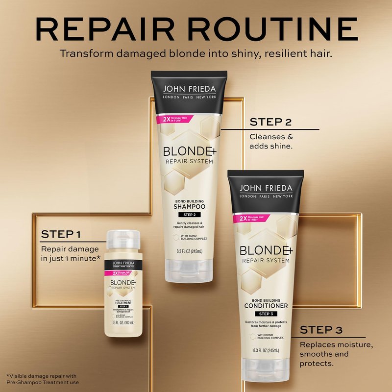 - BOND BUILDING TRIO - The perfect trio to address your blonde hair damage, the John Frieda Blonde+ Repair System offers incredible hair repair with a bond building complex