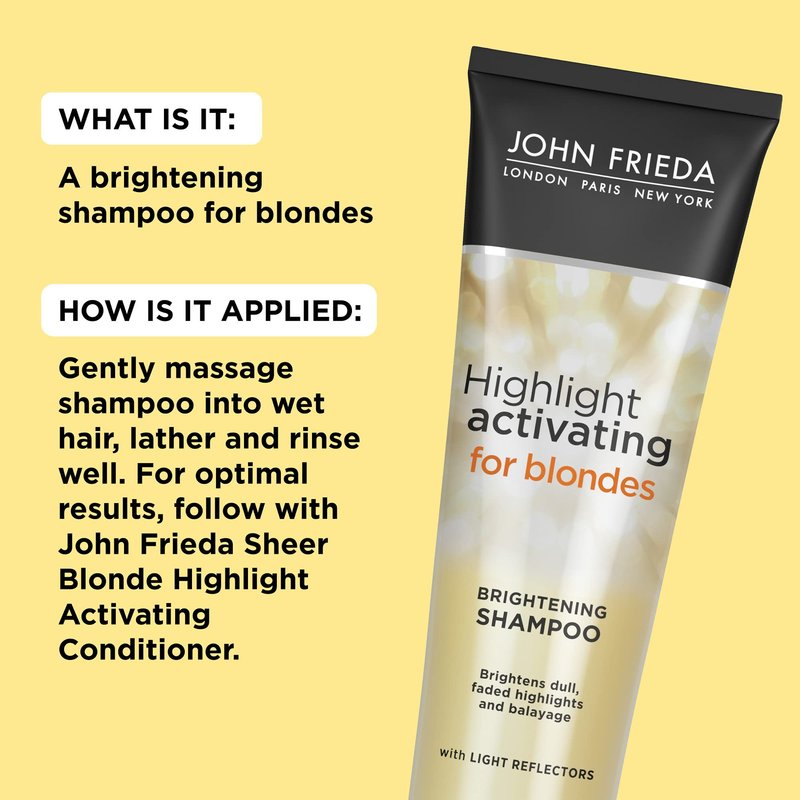 - REVITALIZE NATURAL AND COLOR TREATED HIGHLIGHTS - John Frieda Sheer Blonde Highlight Activating Shampoo reveals multi-dimensional tones when used with Highlight Activating Conditioner (For Blondes).
