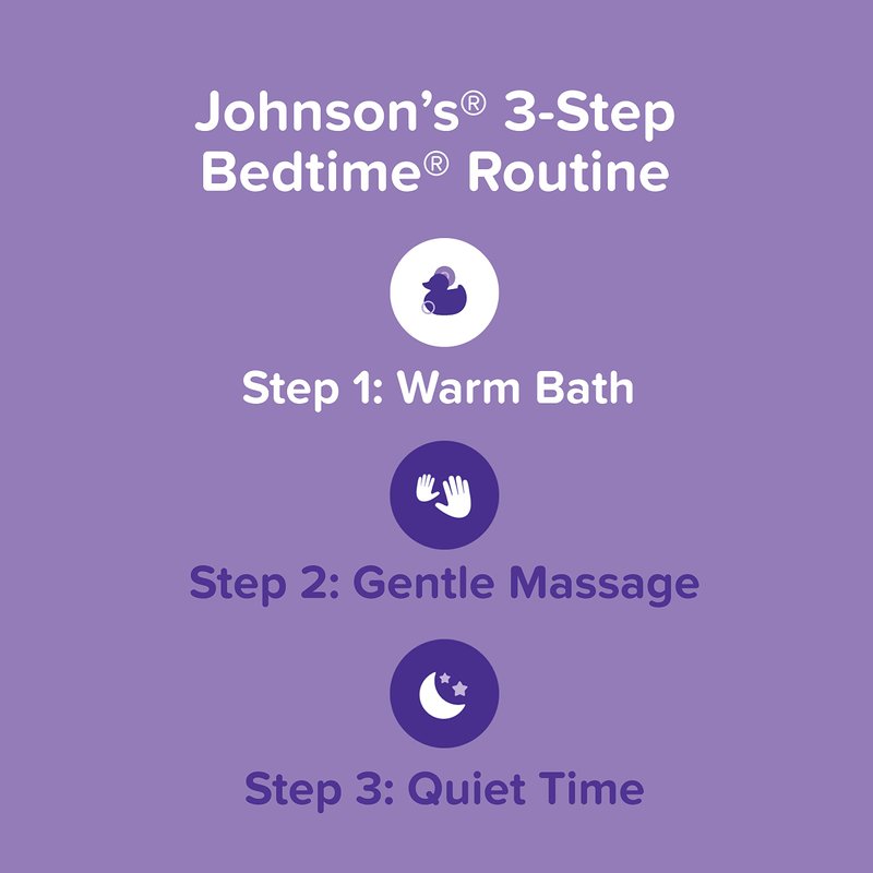 - Use this calming baby bath in the evening as part of the Johnson's clinically proven bedtime routine of Warm Bath + Gentle Massage + Quiet Time to help your baby fall asleep faster and stay asleep longer
