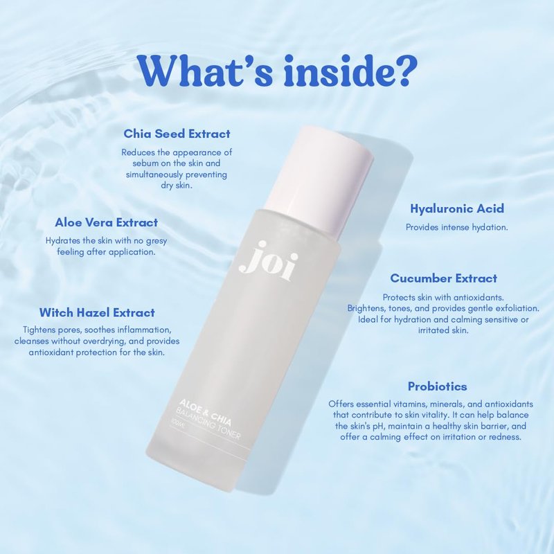 Joi Aloe & Chia Balancing Toner with Hyaluronic Acid, Skin Balancing & Pore Refining, Paraben Free, 3.4Oz