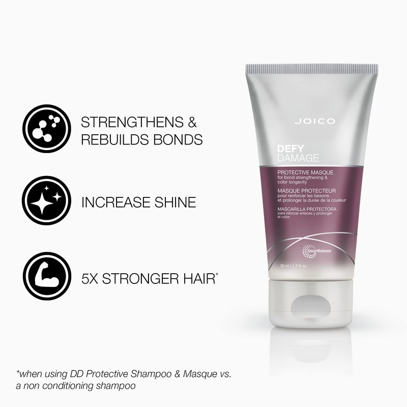 - Joico Defy Damage Protective Mask rebuilds broken hair bonds, replenishes deeply without weighing hair down, proactively builds resistance to damage, and delivers visible results after the very first use. Perfect for restoring and maintaining healthy, strong, and damage-resistant hair.