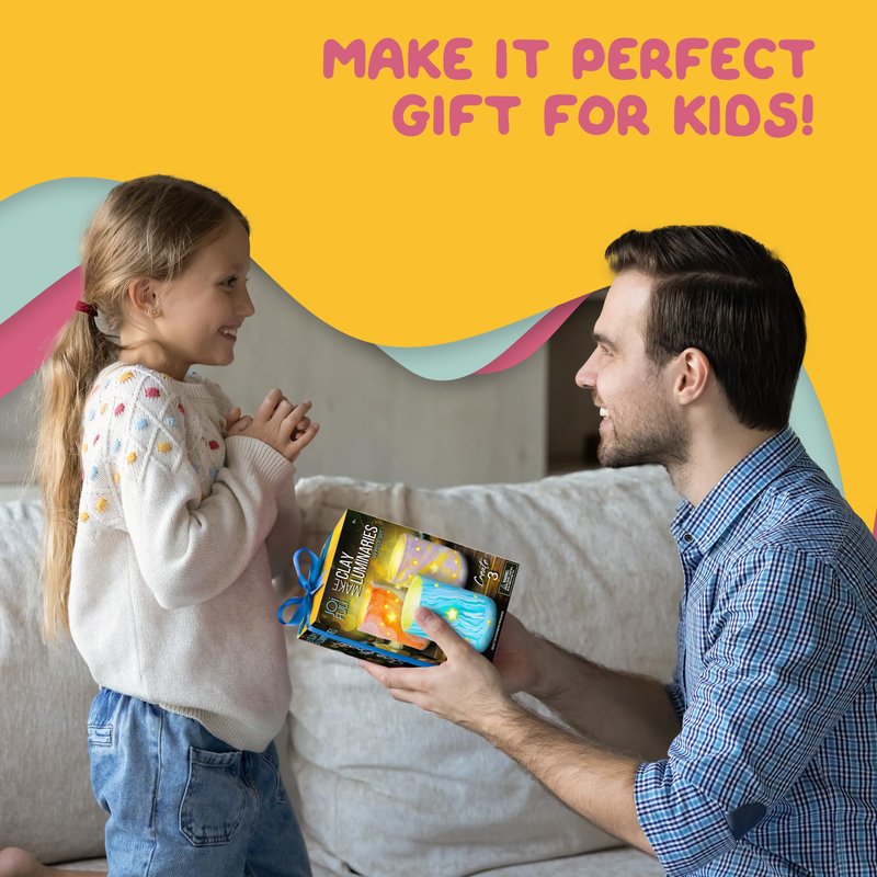 - COMPLETE CLAY CRAFT KIT: Includes everything needed to create 3 unique clay luminaries—polymer clay, a luminary mold, plastic knife, roller, tube, 3 flameless LED tea lights, and detailed instructions. Perfect for fun DIY crafts for kids.