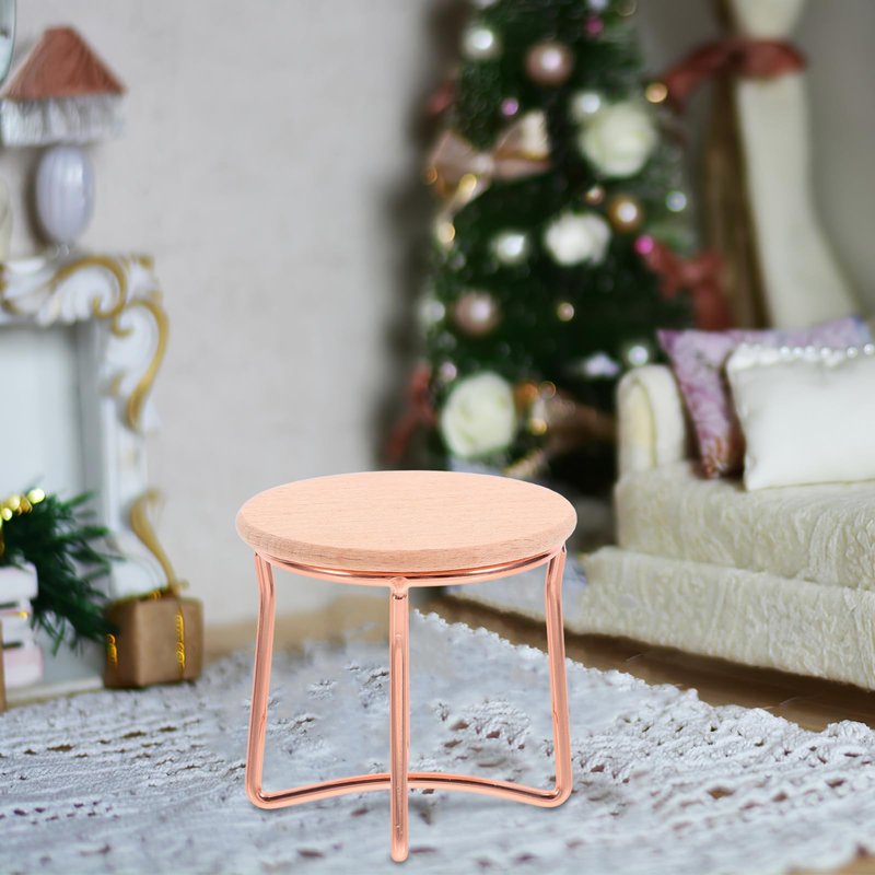 JOINPAYA Mini Dollhouse End Table: Miniture Wooden Home Furniture Round Side Tea Table Model for Living Room Bedroom Scene Decoration