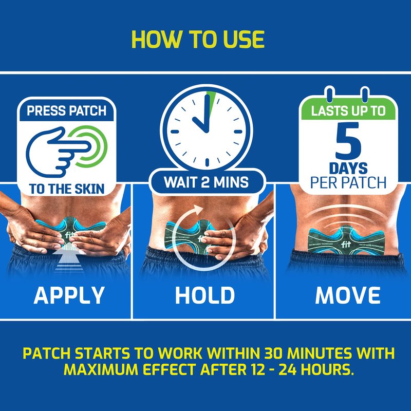 - Easy to use: Apply at the site of discomfort—press patch to the skin, wait approximately 2 minutes for full activation. Lightweight, comfortable, won’t restrict movement or irritate skin. Remove after 5 days and replace with another patch if desired. Watch our video to apply.