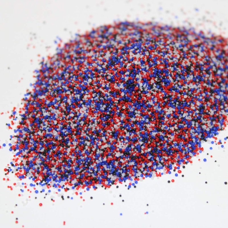 Add pop and color to any of your favorite creations with our confetti mix of colorful Jojoba Scrubby Beads. This is our blend of the colors White, Black, Red and Blue. Our confetti blend will really add some eye popping pizzaz to your favorite creations! Our color popping Jojoba scrubby beads are made from a natural blend of gentle jojoba and castor oil. They are a colorful, effective, and biodegradable, easy to use, additive to any scrub, shampoo, body wash. Easy and fun to use. Perfect for shower gels, shampoos, melt and pour soap, facial washes, scrubs and more! Use anywhere you want to brighten up a product with color, plus gentle exfoliating. They won't irritate or scratch delicate skin like exfoliants made with ground shells . Plus they are not a nut derived product - so they are a good choice for those that might suffer with nut allergies. A perfect alternative to plastic microbeads causing particle water pollution, and harm to aquatic life. INCI: Hydrogenated Castor Oil (and) Hydrogenated Jojoba Oil and color Particle Size:20/40 Melting point 82 C (180 F) Popular Applications for jojoba beads: - Facial cleansers and scrubs. - Exfoliating cleansers - Melt and pour soap - Bar Soaps - Shampoos, Body Washes You will receive a 1 Oz bag of our Eye catching jojoba beads mixed together for a confetti look. These are microbeads and they are the 20/40 size (very small) Our photo is a close up of the actual product but these are small beads.