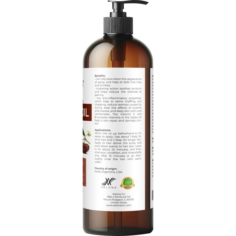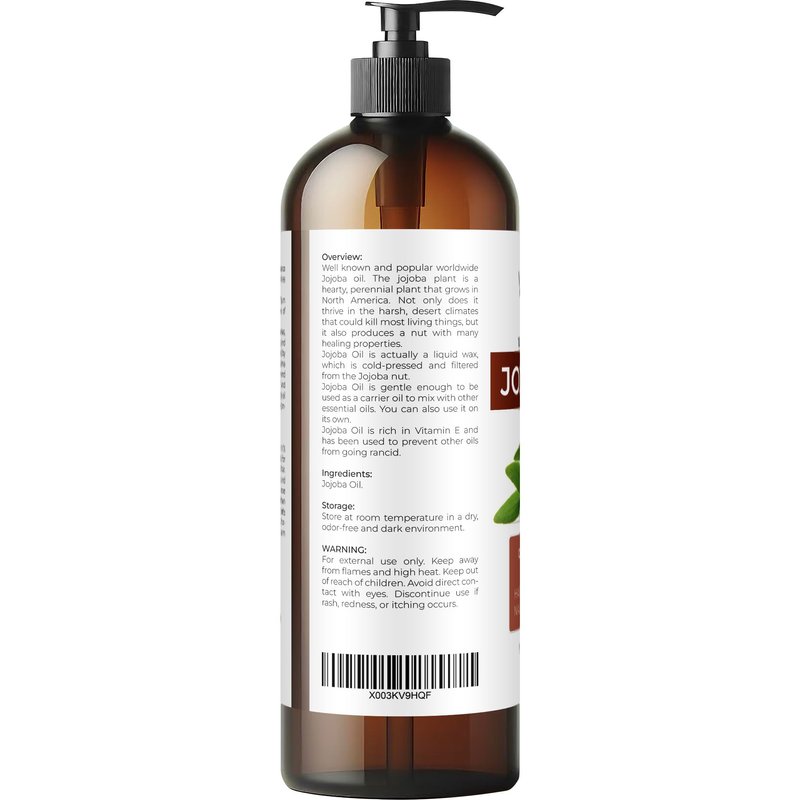 - 100% Pure & Natural Jojoba oil: 100% Pure and Natural. Cold pressed. Not Diluted, Non-GMO, No Additives, No Fragrance, Chemical Free, Alcohol Free, Hexane Free. All our products are bottled in the USA.