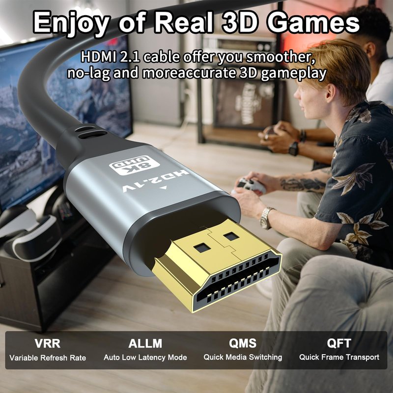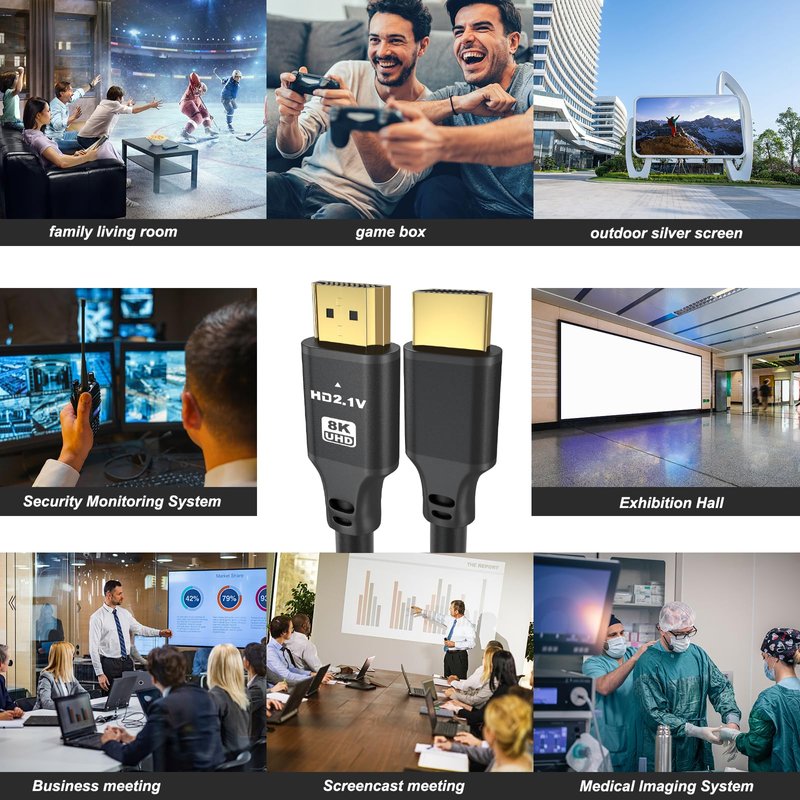 8K HDMI Cable: can replace 4k HDMI Cable, 7680x4320, 8K@60Hz, 2K@144Hz, 1080P/240Hz, 3D video, 7.1 surround sound, HDR, ARC and even Ethernet