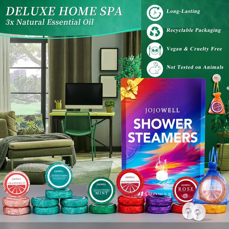 - Organic Shower Steamer - JoJowell extracts essential oils from fruits and plants from organic farms, concentrated scent essences, aromatic compounds 50% higher than other shower steamers, long lasting and healthy scent, preservative and gluten free, let you indulge in shower moments. Put one of these shower steamers in the corner of your bathroom, don't overwhelm it, and enjoy the moment. Fathers day gifts.