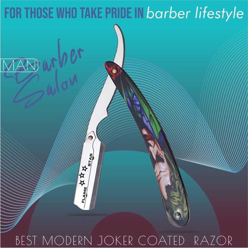 Joker Coated Changeable Blade Professional Barber Straight Edge Salon Hair Cut Razor 100% Stainless Steel with Blades By "FLAME STAR"