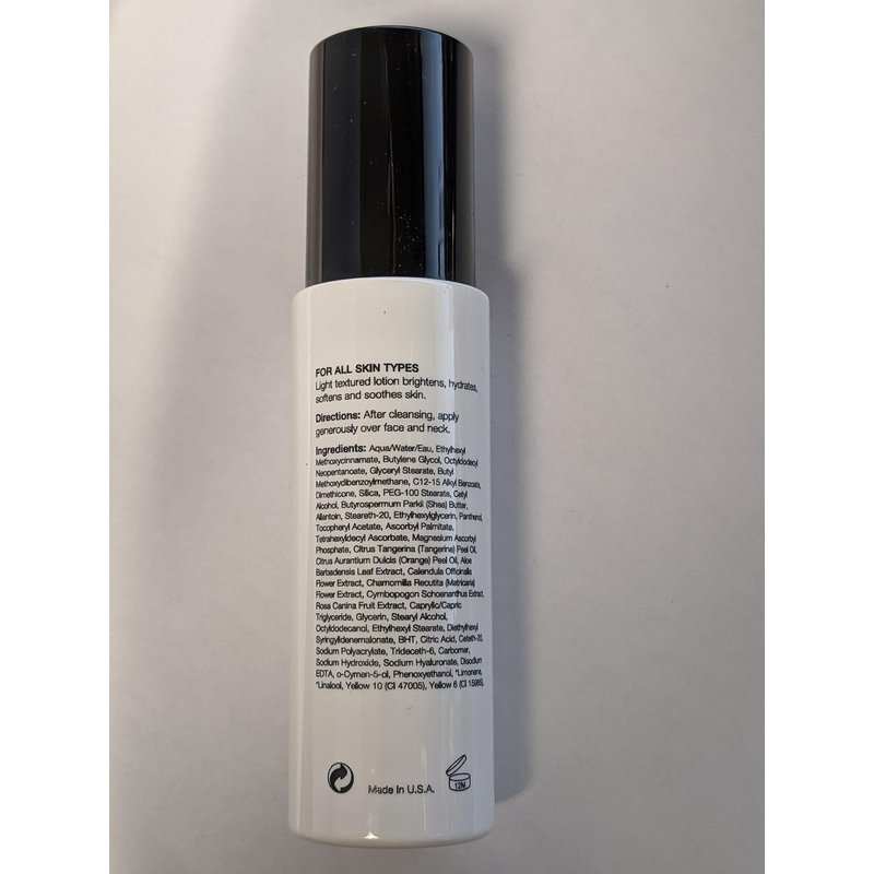 Broad Spectrum SPF protects against damage from UVA and UVB exposure. Vitamin C brightens skin, enhances collagen production, helps strengthen skin’s own repair mechanisms, reduces hyperpigmentation for a more even skin tone, and provides unsurpassed antioxidant protection against free radical damage. Glycerin & Aloe Moisturize and soften skin. Rose Hips Extract (high in Vitamins C & A) Help strengthen capillary walls. Natural Marigold Extract & Allantoin Soothe and protect against inflammation. Panthenol (Vitamin B5) Conditions and strengthens skin. Vitamin E Conditions skin and helps to provide powerful antioxidant protection benefits. Natural Tangerine & Orange Peel Oil Impart a sensorial fragrance.