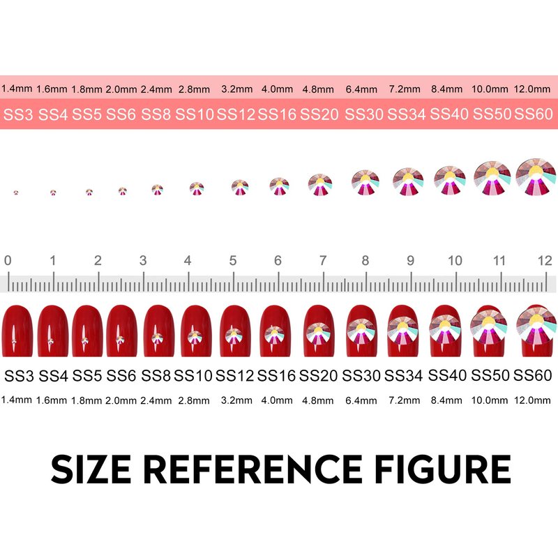 - Choice notice: Please watch the size you need, you can refer to the size chart, these small sizes are fit for nail art, if you need to decorate your clothes, shoes etc. you may need larger size. You can search Jollin rhinestones to find large size and other color stones.