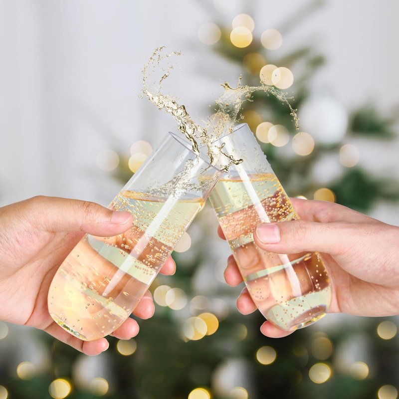 - 【Premium Quality】 Our stemless plastic champagne flutes are made of shatterproof, recyclable, and BPA-free materials, so you can use these clear plastic toasting glasses without any worries.