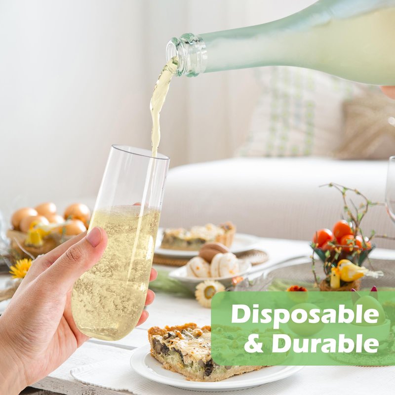 - 【Perfect for Any Occasion】The 9 oz disposable champagne flutes are perfect for any occasion, and they can be used for upscale weddings, Easter, caterings, banquets, cocktail parties, and outdoor use like patio, pool beach, etc.
