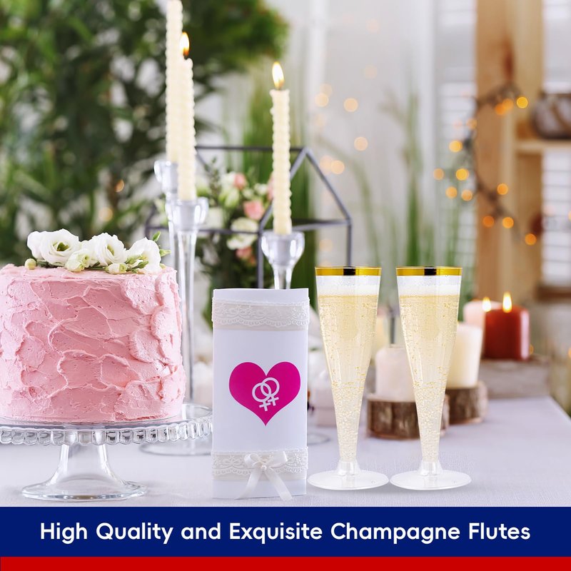 - VERSATILE USE: These Gold Rim Plastic Champagne Flutes are Perfect for Bridal Shower, Mimosa Bar, and special occasions. They can be used for weddings, engagements, birthday parties, graduations, anniversaries, catered events, and more