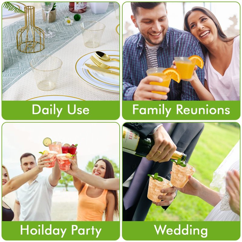 - Wide Occasions: These 9-ounce gold plastic cups are perfect for wine, whiskey, and cocktails. Suitable for weddings, birthdays, parties, picnics, buffets, family reunions, and other activities. This set contains 50 flip cups for all guests